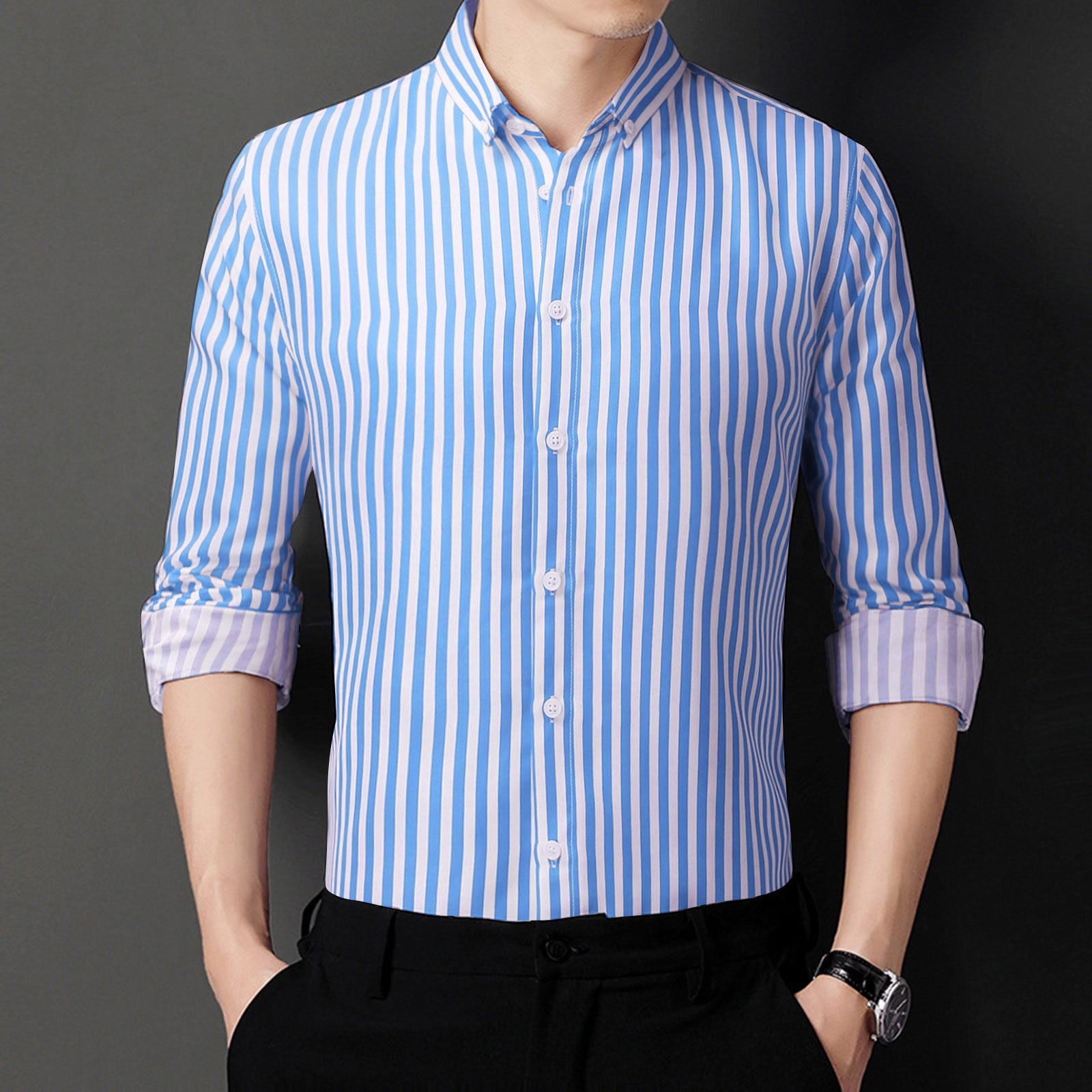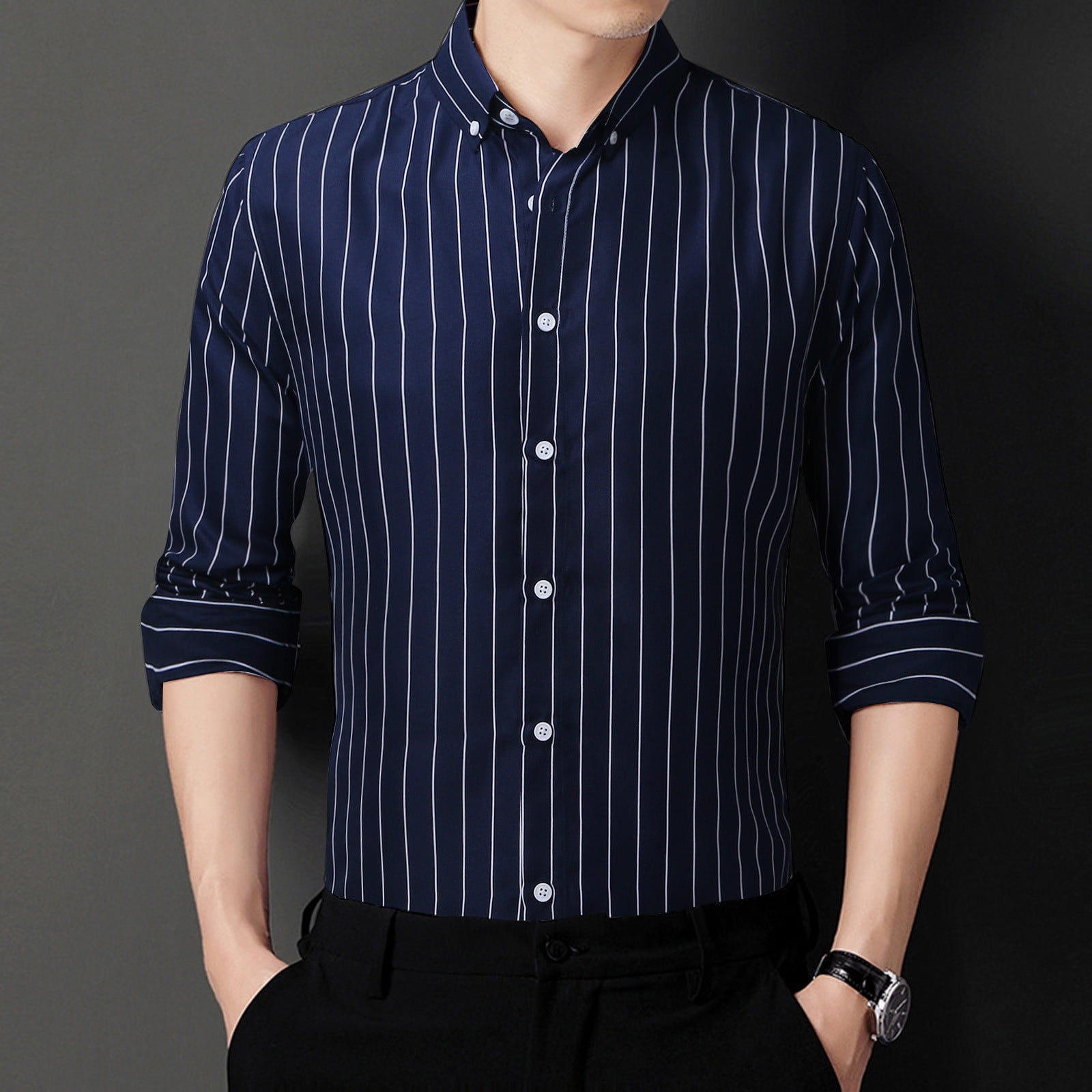 Mens Shirts Mens Fashion Casual Simplicity Korean Slim Striped Lapel Long Sleeve Shirt Top Flannel Shirt For Men Walmart Com